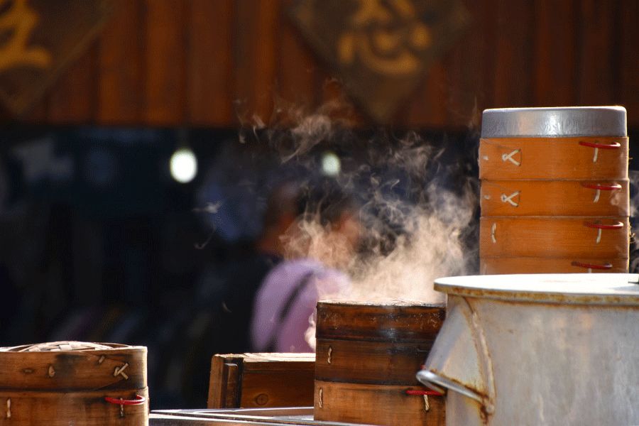 天津的“狗不理包子”格外有名,傳聞它家的湯包湯汁多到“能順手流到脊背”。據(jù)說(shuō)有兩個(gè)素不相識(shí)的人到店里吃湯包,在同一張桌子前面對(duì)面坐著。